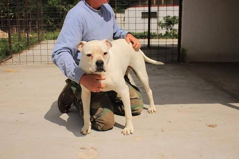 zur Besonderheit: | seit 2018 im Shelter Dogo Argentino/Boxer/Bulldog Mix |