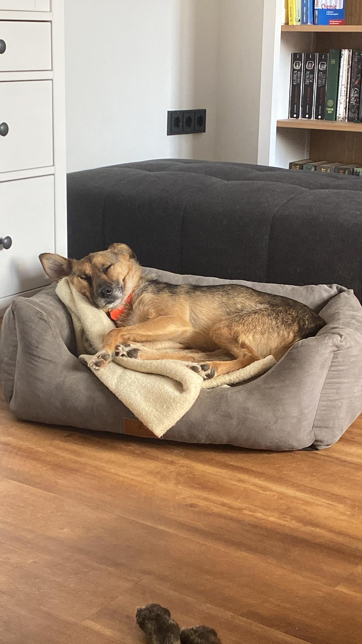 Bei uns zeigte sich Herbert nach kurzer Zeit fröhlich und aufgeweckt, bei Berührungen immer noch zurückhaltend, genießt Streicheleinheiten aber mittlerweile sichtlich. Da er grundsätzlich eher zurückhaltend ist und sich lieber zurückzieht, möchten wir in Herberts zukünftigem Für-Immer-Zuhause keine kleinen Kinder. Kinder an sich sind kein Problem, so lang sie nicht aufdringlich werden, dann legt Herbert nämlich den Rückwärtsgang ein und macht sich unsichtbar.