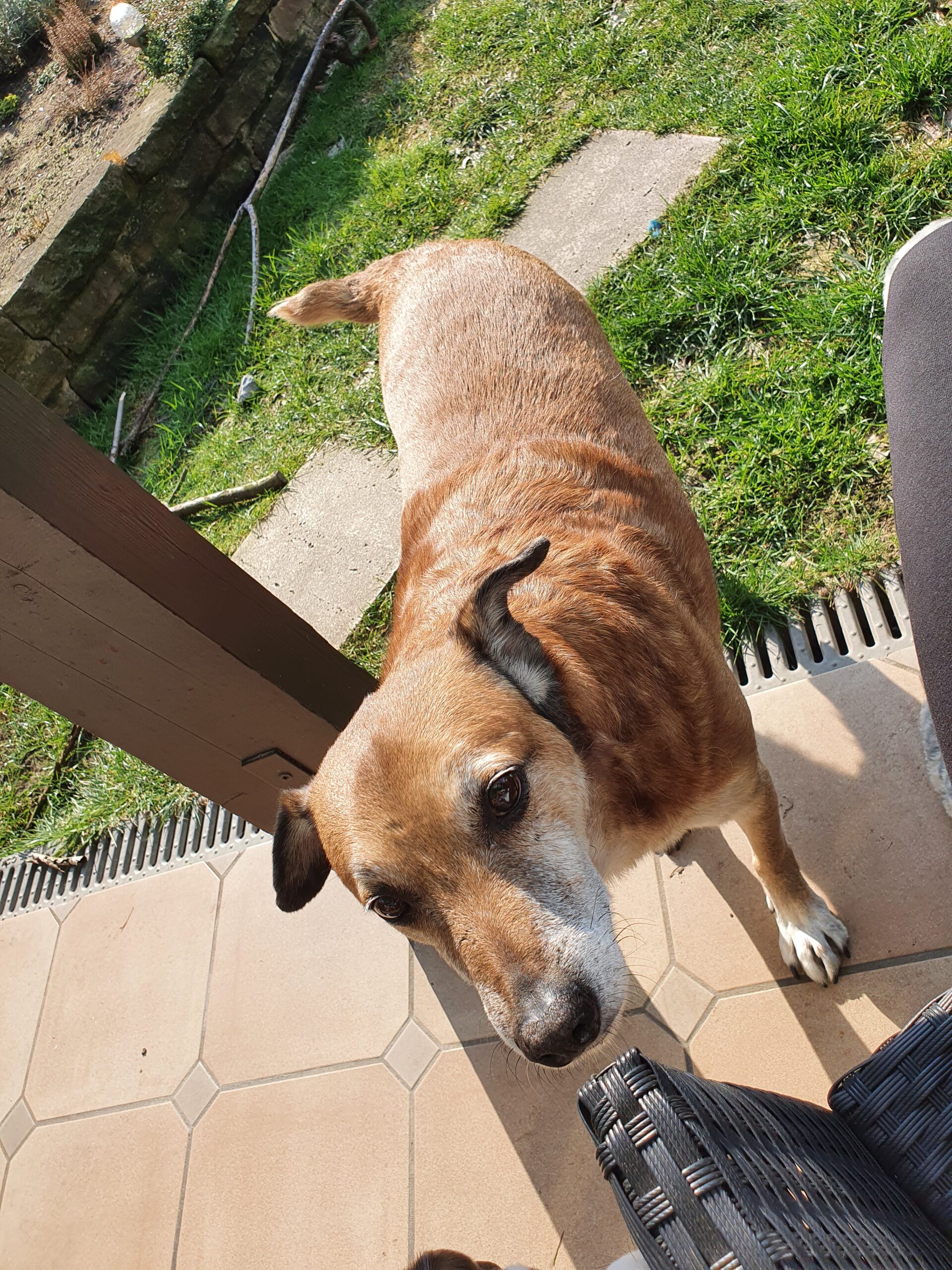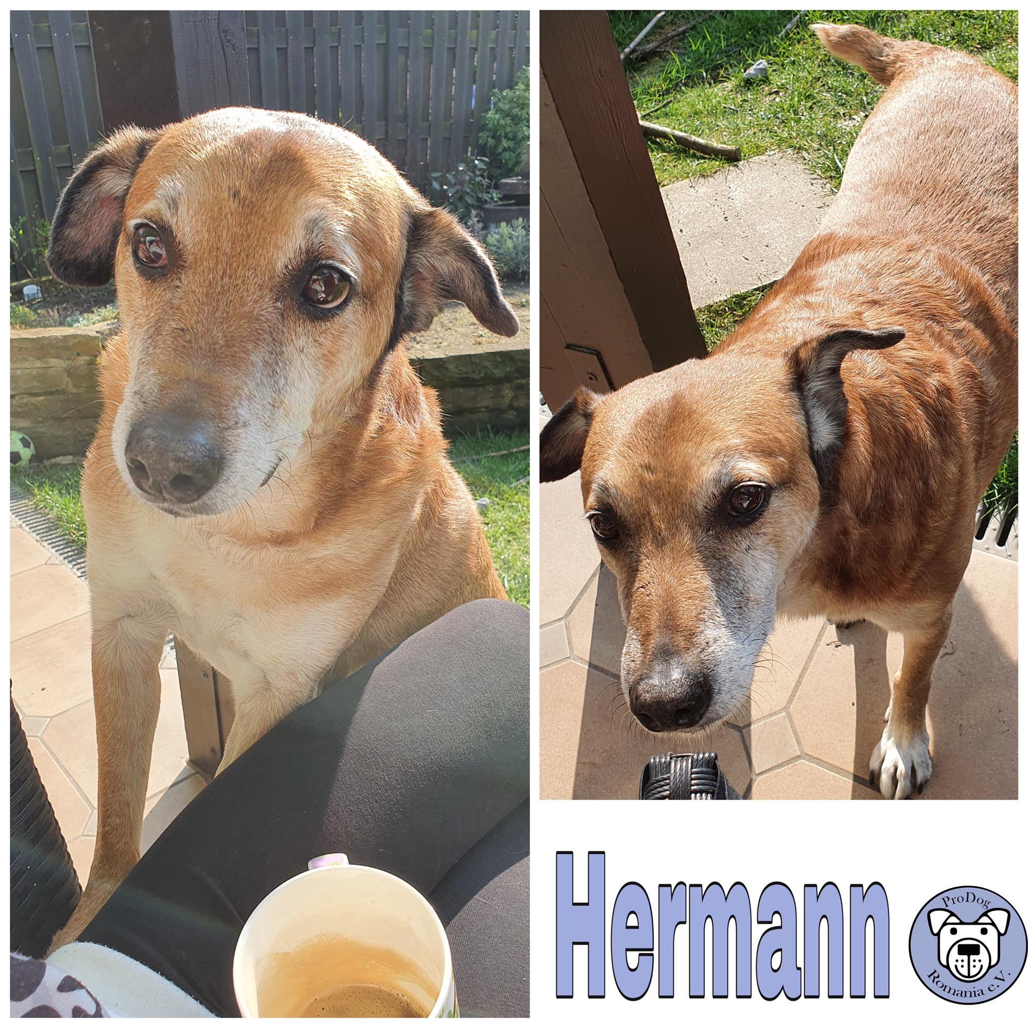 Hermann ist ein alter, lieber Kerl, der seit September 2019 in Deutschland ist. Er ist in der Wohnung ein ruhiger und verschmuster Hund, er ist offen und fordert die Aufmerksamkeit seiner Menschen ein. Er ist ein Hund mit großem Selbstbewusstsein. Dies äußert sich zB durch anfängliches markieren, auch im Haus. Seine Geschäfte macht er aber hauptsächlich draußen. Er hat seinen eigenen Kopf und braucht klare Führung. Über einen Artgenossen würde er sich im neuen Zuhause sehr freuen. Hier im Rudel spielt er gern mit seinen "Geschwistern" und auch fremden Hunden gegenüber zeigt er sich sehr interessiert und neugierig, bellt zuerst und freut sich dann. Das Autofahren klappt bereits gut (in einer großen Box). Spaziergänge findet er super, da gibt’s ja auch einiges an tollen und neuen Gerüchen. Er trägt immer noch sein Sicherheitsgeschirr, da er sehr zieht. Das Zusammenleben mit einer Katze kennt er nicht, aber mit kleinen Kindern kommt er super klar. Allein bleibt er noch nicht so gern, er ist immer froh, wenn das ,Rudel’ wieder beisammen ist, er ist ja auch schon ein Oldie und hat Verlustängste.