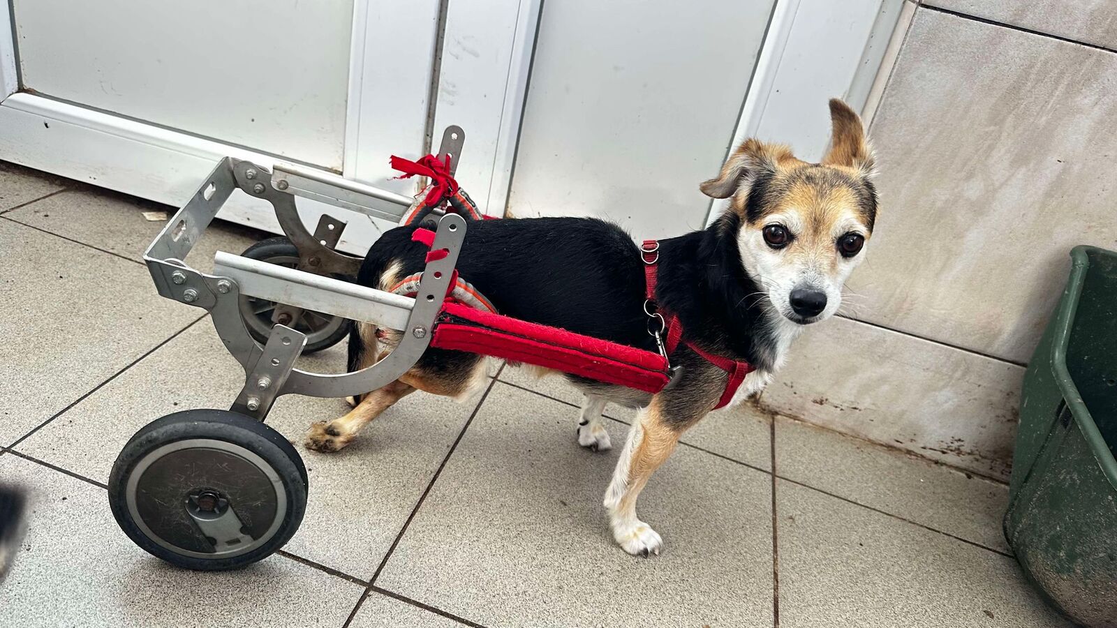 Wir vermuten, dass HIDDE durch einen Unfall gelähmt ist. Er hat einen Rolli, damit kommt er sehr gut zurecht und ist mobil. HIDDE ist nicht inkontinent, sondern kann selbstständig Kot und Urin absetzen ohne Unterstützung.