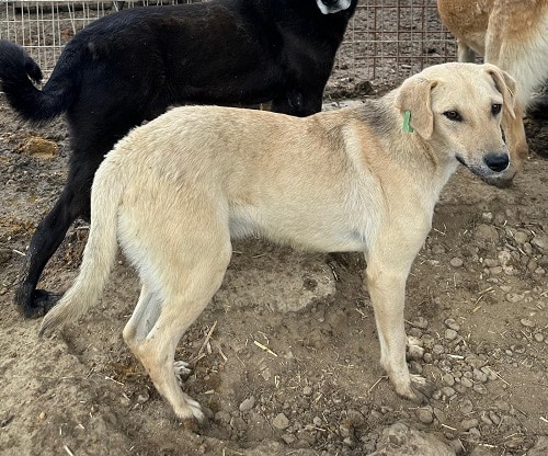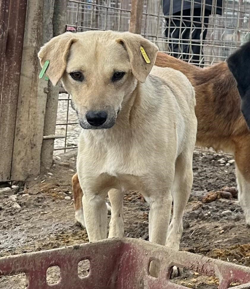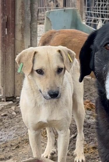 Dieser zierliche Rüde war schon interessiert bei uns und nahm die weit entfernten Leckerchen vom Boden auf. Unter Bedrängung in der Hütte schnappte er leicht ab; wer will es ihm verübeln, viel Gutes kam vermutlich noch nicht von uns Menschen. Das soll sich ändern und wir wünschen dem Bub ein schönes Zuhause.