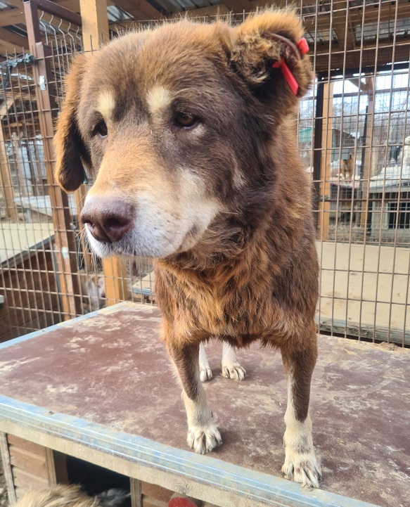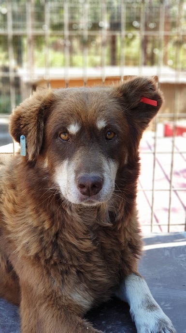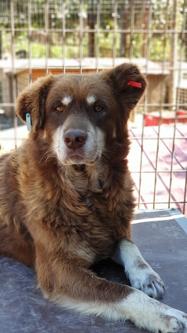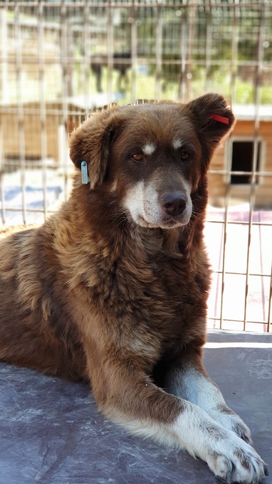 HIEWA ist eine wunderschöne Hündin, imposant und in sich selbst ruhend, die aber auch schon resigniert und traurig wirkt. Ihre abgeschnittene Ohrenspitze deutet daraufhin, dass sie einen Besitzer hatte.