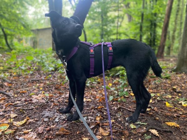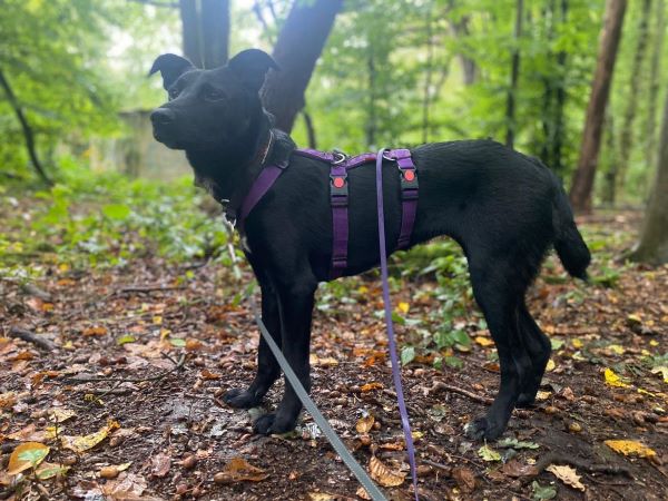 Mit anderen Hunden ist sie sehr verspielt, aber auch recht draufgängerisch. Sie braucht also durchaus selbstbewusste und kompetente hündische Sozialpartner, die in der Lage sind, sie auch mal in ihre Grenzen zu verweisen. Interessenten sollten sich bewusst sein, dass hier eine Menge Erziehungsarbeit zu leisten sein wird. Wer bereit ist diese Arbeit zu investieren, wird belohnt mit einer menschenbezogenen, freundlichen, und sicher auch sehr sportlichen Hündin. Sowohl bei Menschen als auch bei Hunden hat Hilary keine Berührungsängste. Fremde werden freudigst begrüßt und direkt gekuschelt. Auch sonst zeigt sie in neuen Situationen kaum Unsicherheiten. Ich kann sie mir daher in unterschiedlichen Kontexten vorstellen, sowohl bei einer Einzelperson als auch bei einer Familie. Sie kann alleine oder auch als Zweithund vermittelt werden. Ein Hund für Couch Potatos wird sie aber sicherlich nicht. Sie läuft mittlerweile ziemlich gut an der Leine, Leinenführigkeit ist aber natürlich (!) noch ausbaufähig. Sie lässt sich überall anfassen und Geschirr an- und ausziehen ist überhaupt kein Problem. Ihr Geschäft erledigt sie zuverlässig draußen.