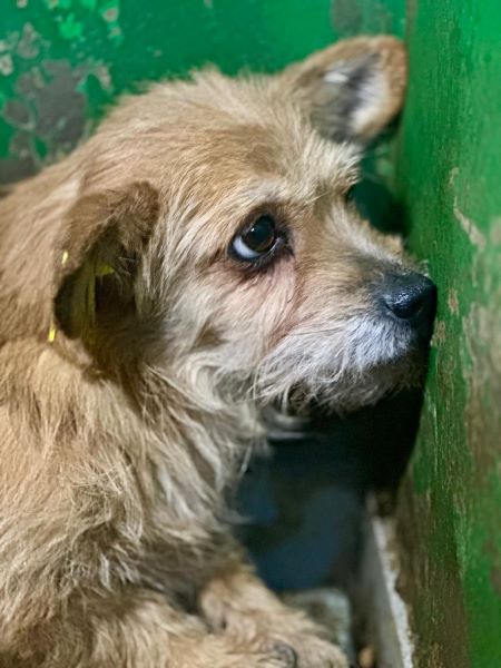 Diese arme, sehr verängstigte Hündin saß Monate im dunklen VetKennel mit kleinen Welpen zusammen. Kein Wunder das sie nur noch Panik hat. Wir brauchen hier Menschen mit sehr viel Erfahrung mit unsicheren Angstbeißern. Sie ist sehr verträglich.