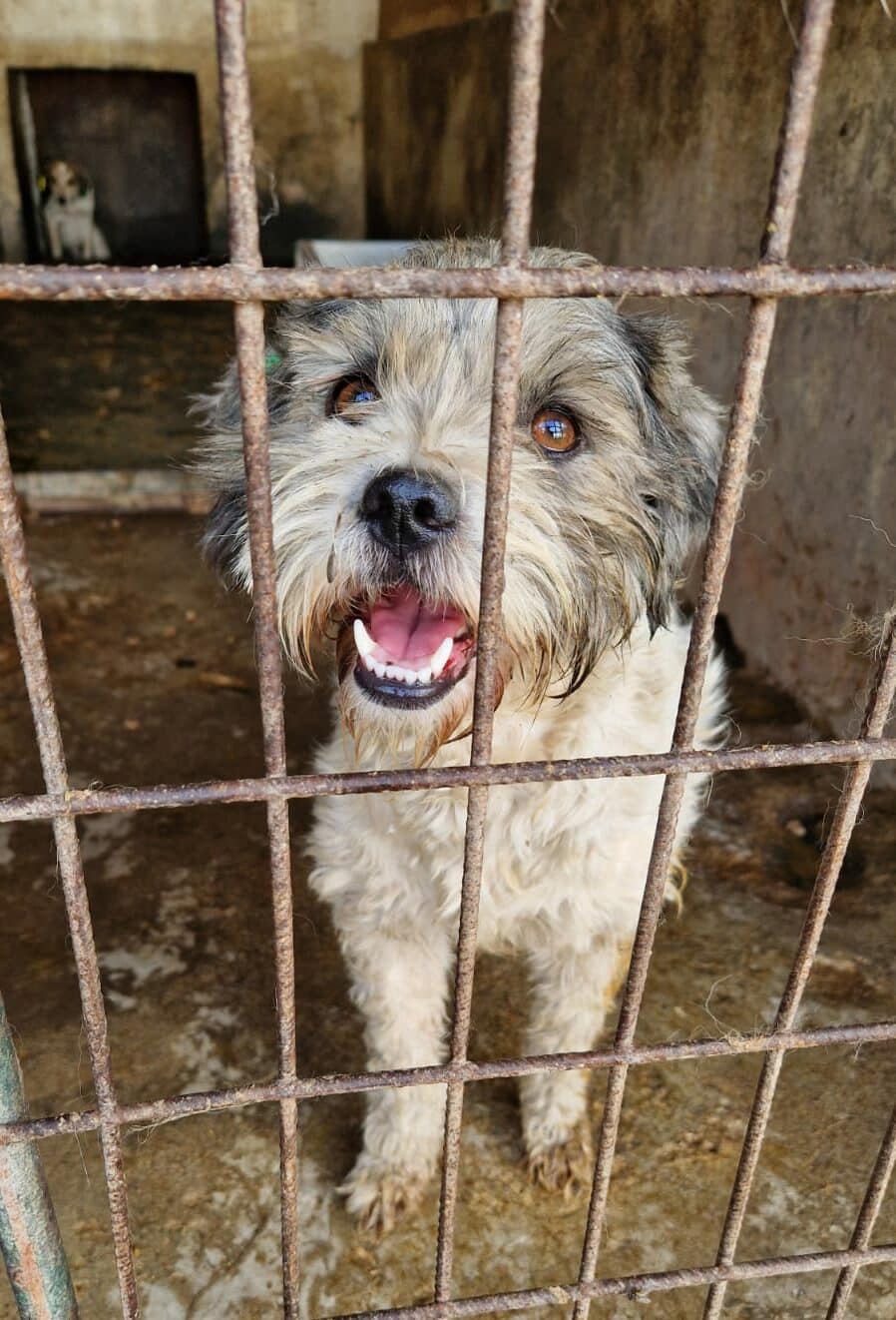 Die nette, noch junge HOLLIE stand bereits am Eingang des Vetkennelabteils und schaute neugierig nach uns. Sie wurde erst kurz vor unserem Besuch kastriert und wartet auf einen freien Platz in den Außenkennels. HOLLIE zeigte sich von Anfang an menschenbezogen, gut und gerne anfassbar, ließ sich lieb die Zähne kontrollieren und wirkte auch mit den anderen Hunden in ihrem Abteil sehr verträglich in dieser Situation dort. Sie schien frisch von Verfilzungen befreit worden zu sein. Ein ganz nettes Mädchen, das da schnell wieder raus möchte.