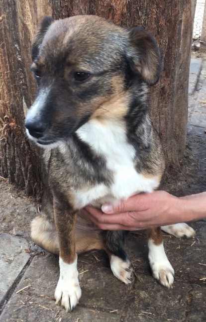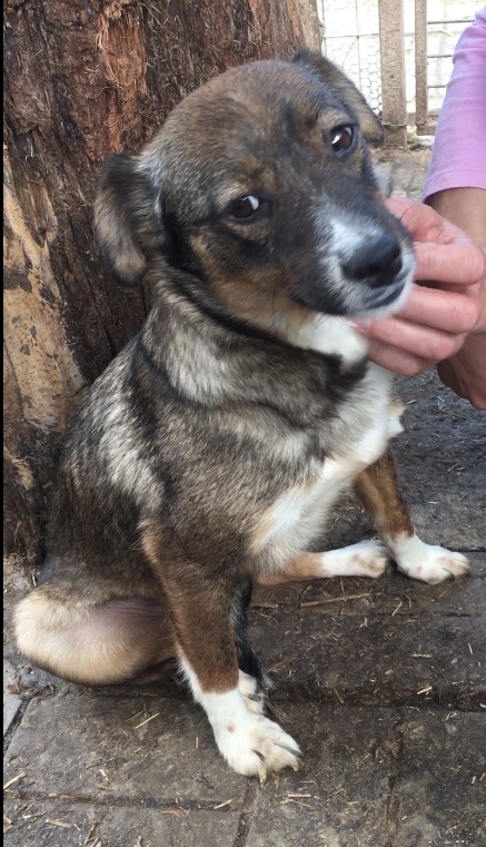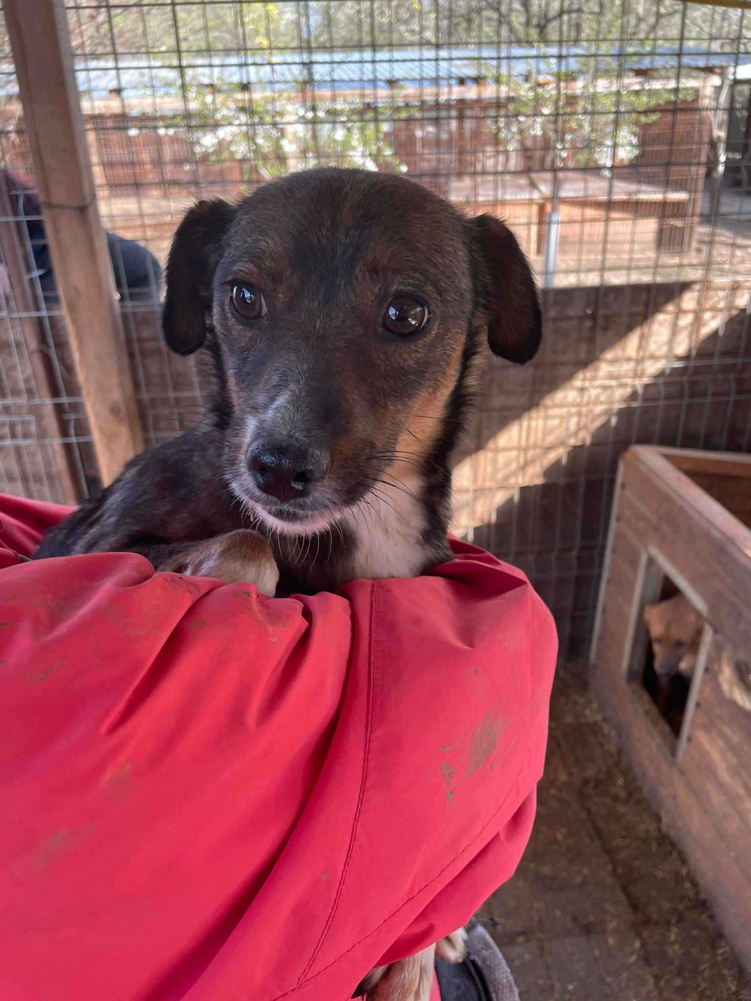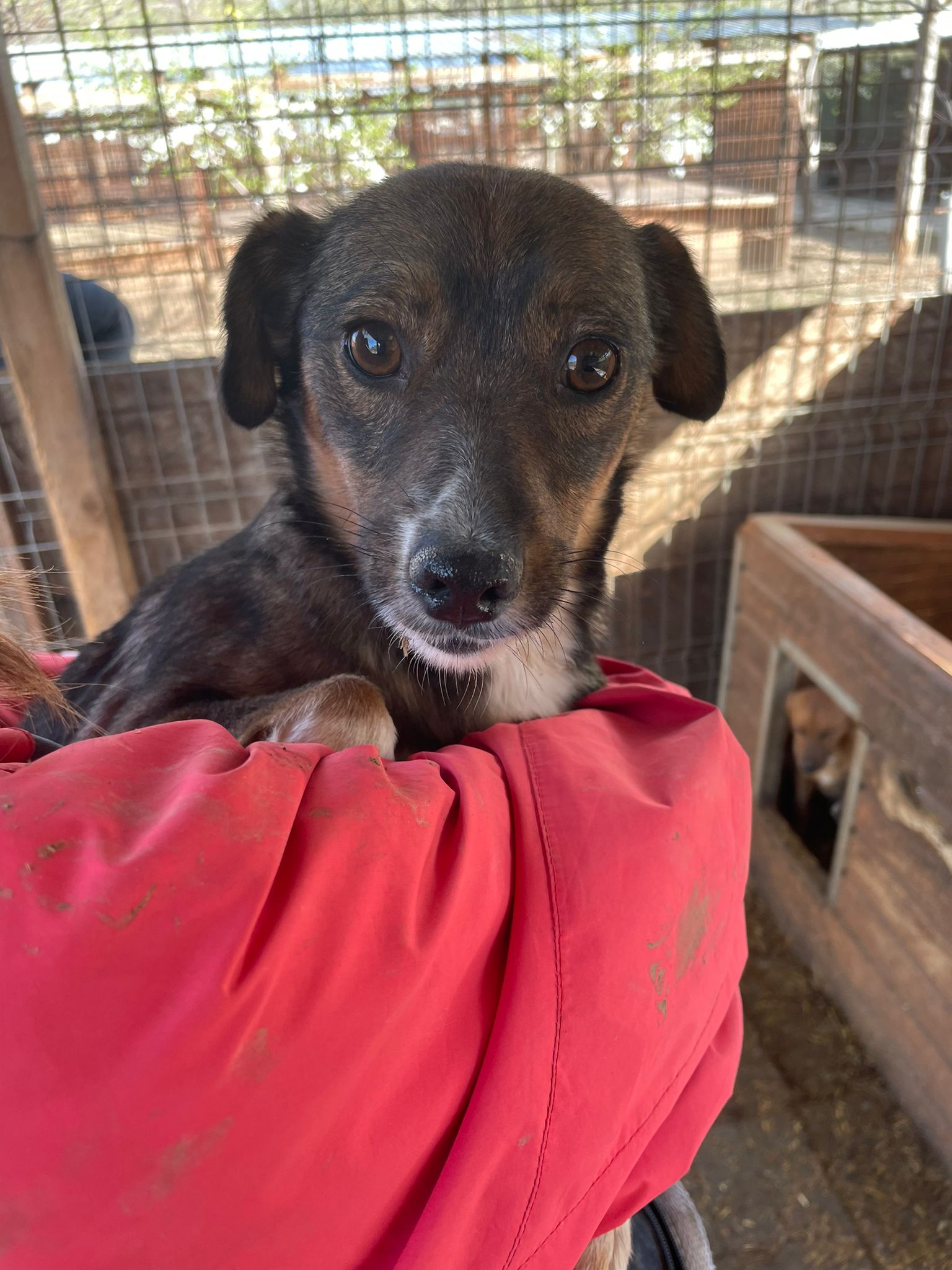 HONEYMOON lebt mit vielen Welpen und Junghunden auf kleinem Raum und wird ständig angerempelt. Inzwischen ist die kleine Hündin ziemlich durch den Wind. Sie ist eher ruhiger Natur und kommt mit dem Stress nur schwer zurecht, wodurch sie sich langsam auch zurückzieht.