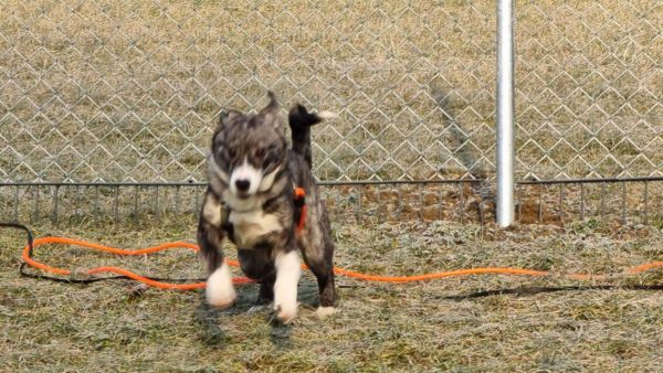 Hoop hat eine sanfte und ruhige Ausstrahlung und einen eisernen Willen. Sie wird bestimmt mal eine souveräne Hündin werden. Draussen wird alles erstmal genau unter die Lupe genommen, auch hier reagiert sie bislang gelassen. Das Hundeeinmaleins muss Hoop natürlich noch lernen.