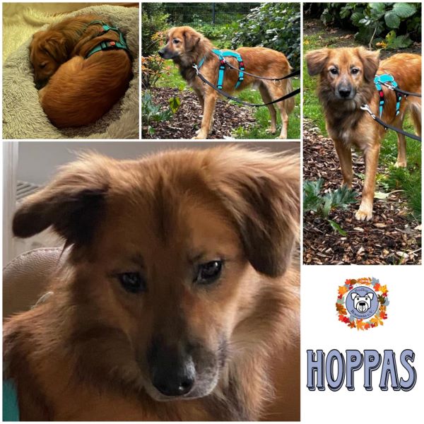 Er ist stubenrein und läuft gut an der kurzen Leine. Er beobachtet alles interessiert und ahmt schnell Verhalten nach. Er bindet sich schnell und lässt sich leicht in seinem Verhalten lenken. Vor Straßen und Autos hat er noch Angst und auch das Autofahren stresst ihn noch. Er zeigt Jagdtrieb und wird bestimmt ein aktiver, verspielter Hund. Das Alleinebleiben kennt Hoppas bisher nicht und er fühlt sich sicher, wenn ein anderer Hund oder ein Mensch bei ihm ist.