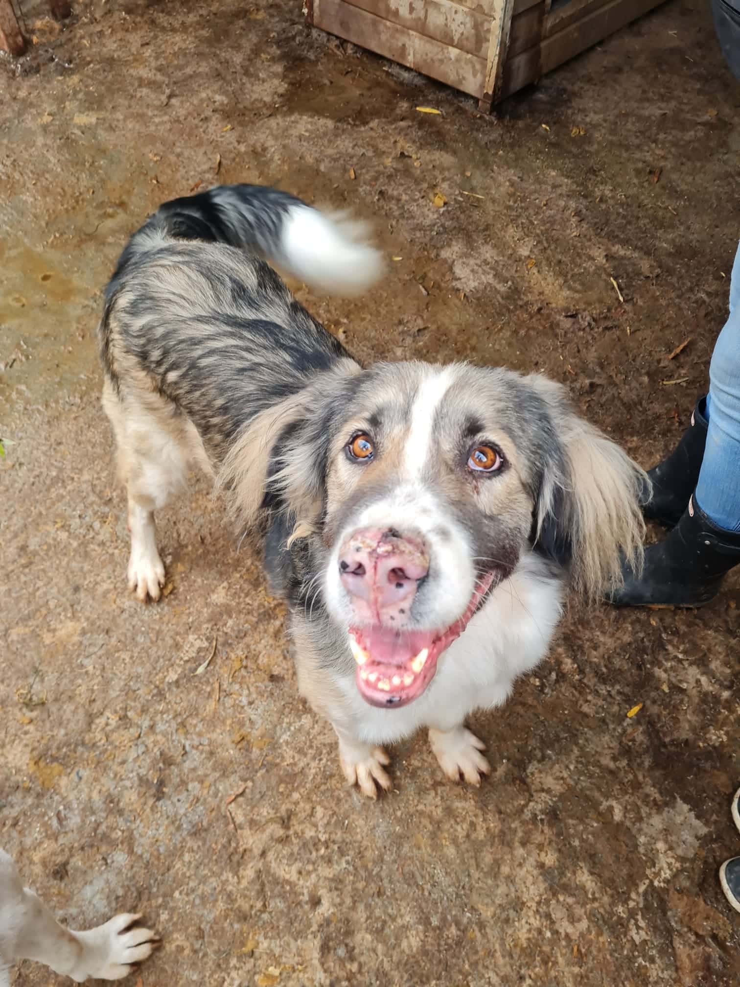 Upodate 07/23: Der bildschöne Rüde Humphrey ist eine verschmuste Frohnatur und wird nur durch seine Größe daran gehindert, Schoßhund zu werden. Der reizende Bub ist ausgesprochen freundlich, überall gern und gut anfassbar und auch mit anderen Hunden verträglich. Er begegnet dem Menschen zutraulich, offen und neugierig. Bei unserem Besuch legte er sich gleich hin und wollte am Bauchi gestreichelt werden. Ein Dreamboy! Seine Hautprobleme haben sich sehr verbessert. Da er aber nun mal ein Herdi-Mix ist, wird er nur in erfahrene Hände vermittelt und benötigt Platz und einen Garten. Das aber möglichst schnell, seine Seele leidet.