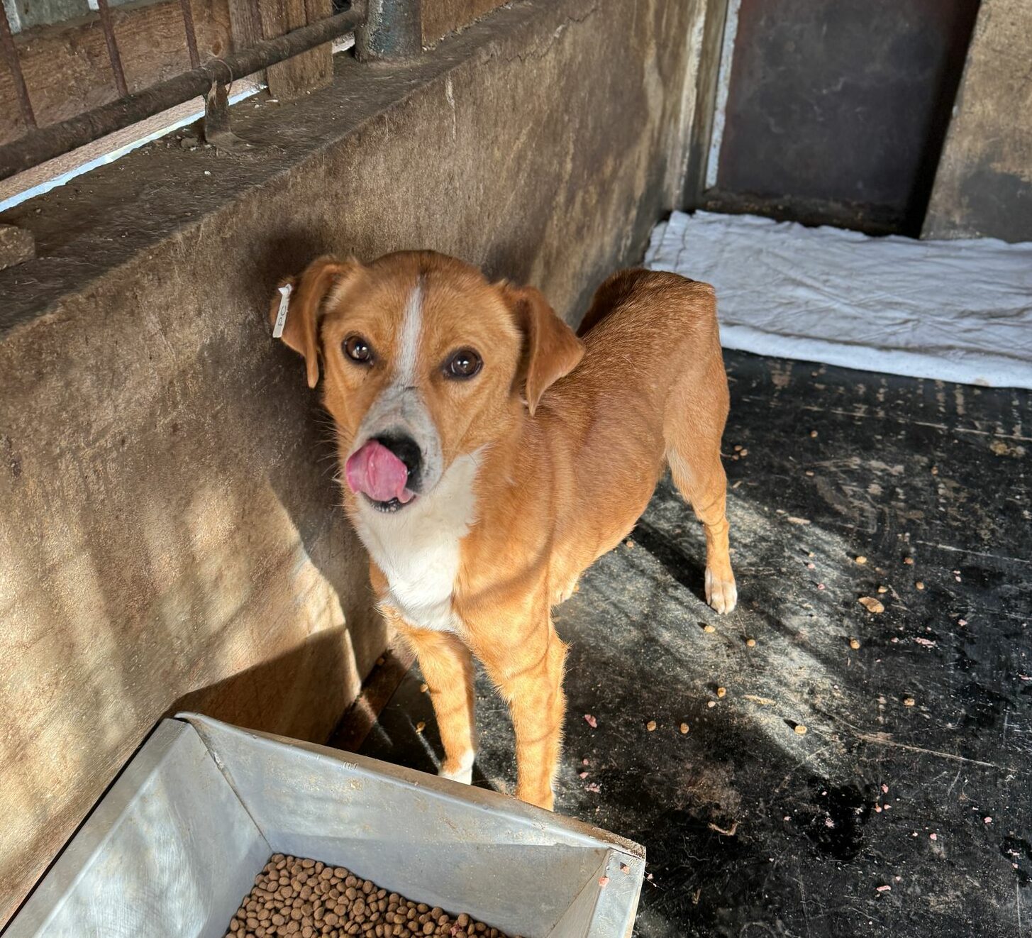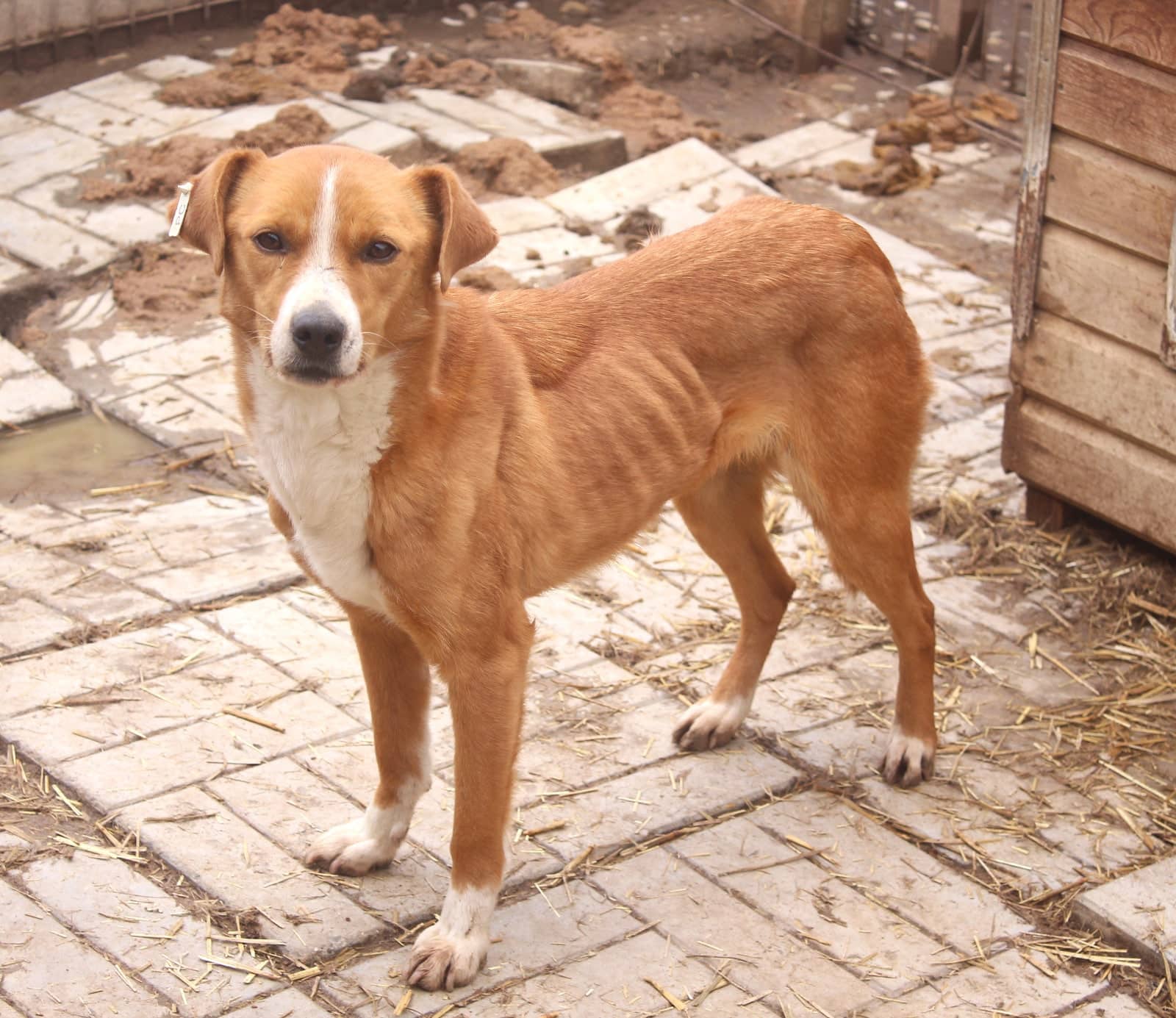 ILARIA ist ein absoluter Notfall. Sie hat wirklich kein Gramm mehr auf den Rippen. Für sie ist es 1 vor 12 und es ist uns wirklich ein absolutes Rätsel, wie sie mit dieser Statur überhaupt noch am Leben sein kann. Zunächst lag ILARIA nur auf dem Hüttendach und dann in einer Hütte, sodass wir das ganze Ausmaß ihres Leids gar nicht erkennen konnten. Dann kam sie neugierig zu uns und wollte sich Leckerlies abholen, aber es war fast kein Durchkommen für sie. Sie sitzt in einem extrem stressigen Kennel, in dem mehrere Hunde das Futter und andere Hunde kontrollieren, und sie hat dort nichts zu melden. ILARIA muss seit Wochen oder vielleicht Monaten schlimmsten Hunger leiden und hat keine Chance, sich durchzusetzen. Wir haben die zuständige Tierschützerin informiert und hoffen, dass ILARIA aus ihrem Kennel genommen werden kann, um ihr Leben zu retten, aber Bucov ist bis auf den letzten Kennel voll belegt. Es gibt hier keinen sicheren Ort für sie. Daher braucht sie dringend einen Platz.