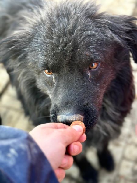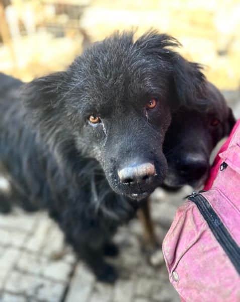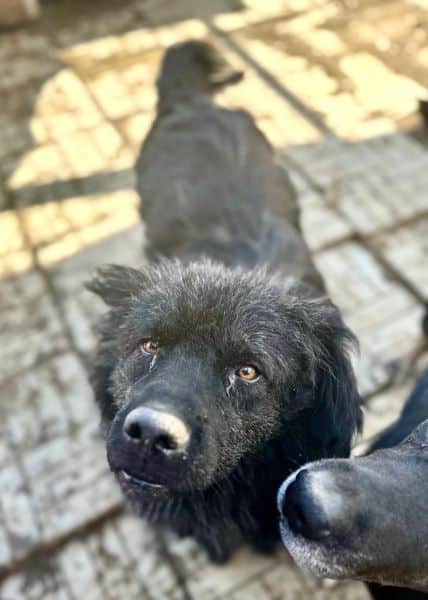 Dieser größere Bub (Geschlecht nochmals überprüft), wobei wir sein Geschlecht nur durch „Unterbodenblick“ versucht haben zu erkennen, weil es ohne Handfühlung bei seinem Fell schwer zu sehen war und uns für diese Überschreitung der Individualdistanz unsere Kennenlernzeit zu kurz war. Er war die ganze Zeit ganz ruhig bei uns, wir konnten ihn anfassen und er nimmt Leckerchen sehr freundlich. Wir konnten ihn jedoch nicht gut lesen, was bei HSH auch nicht immer sofort einfach ist. Sie fallen eben nicht wie manch Labby sofort mit der Tür ins Haus. Wir haben es daher auf ein erstes Kennenlernen beschränkt. Was klar ist, IMANI wirkt mit den zwei Rüden im Kennel sehr verträglich. Völlig gechillt, selbst als Leckerchen im Spiel waren, blieb die Gruppe völlig gechillt. Ob es mit Hündinnen auch so wäre, wissen wir nicht. Wir suchen Menschen mit ausreichend HSH Erfahrung.