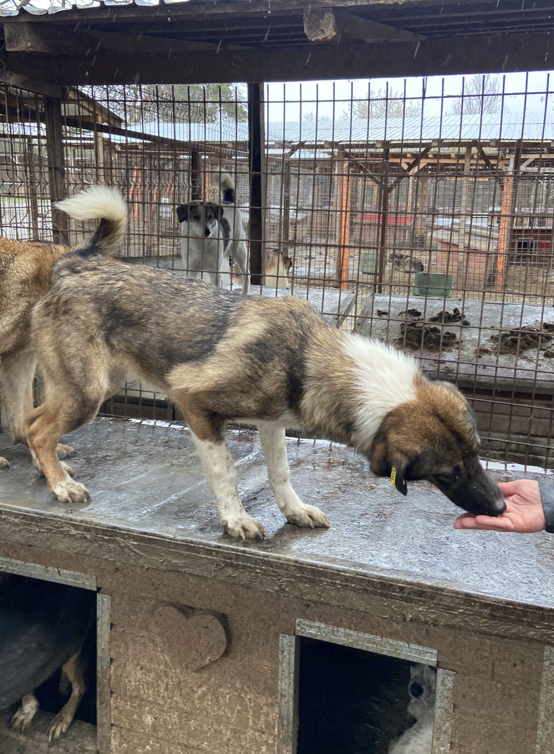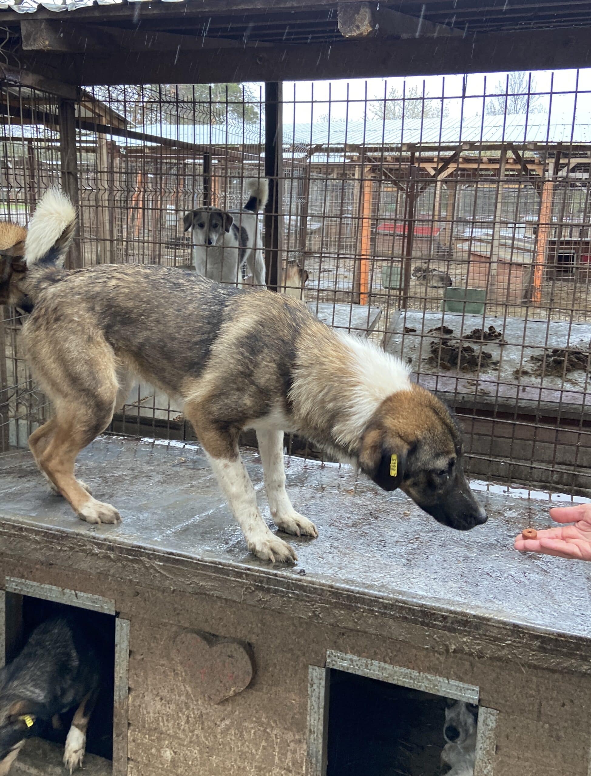 Imma hat ein bisschen mehr Selbstvertrauen erreichen können. Nach einem zögerlichen Anfang konnte sie gut unsere Nähe zulassen und nahm die angebotenen Leckerchen gerne aus der Hand. Das Drängeln ihrer Mitbewohner quittierte sie jedoch am Ende mit Ausweichen; ein etwas ruhigeres Zuhause mit feinfühligen Menschen würde ihr bestimmt helfen. Ein netter Ersthund wäre das I-Tüpfelchen.