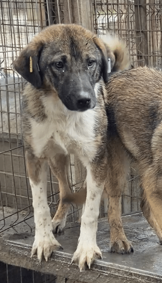 IMMA ist etwas schreckhaft und weiss nicht so recht, was der Mensch denn von ihr möchte. Im Schutze ihres Rudels war es uns möglich, sie leicht zu berühren und Leckerlie nahm sie auch aus der Hand. Das Rudel ist sehr trubelig, mit etwas mehr Ruhe und Zeit wäre sie sicher noch mehr aufgetaut. IMMAzeigte sich sehr verträglich.