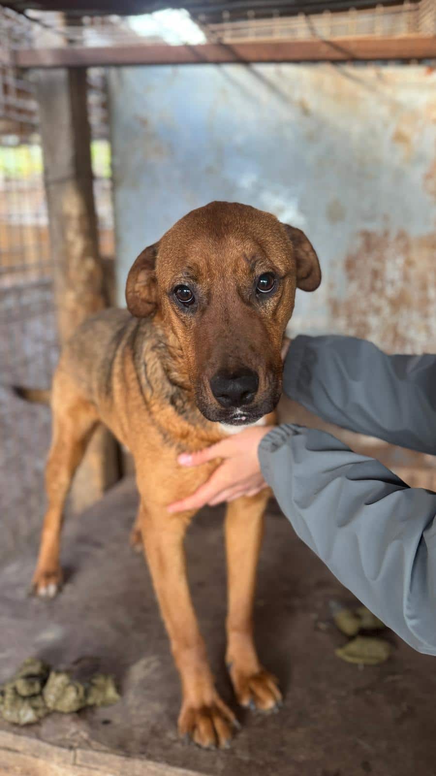 Dieser junge und neugierige Rüde ist neu im Shelter. Er suchte aktiv den Kontakt zu uns Menschen und nimmt Leckerchen aus der Hand. IMMO lässt sich vorsichtig anfassen und scheint dies Zuwendung auch genießen zu können. Seine offene und freundliche Art hat uns gut gefallen und wir wünschen uns, dass IMMO bald ein liebevolles Zuhause finden wird. Aktuell lebt er mit vier weiteren Rüden zusammen und scheint dort verträglich.