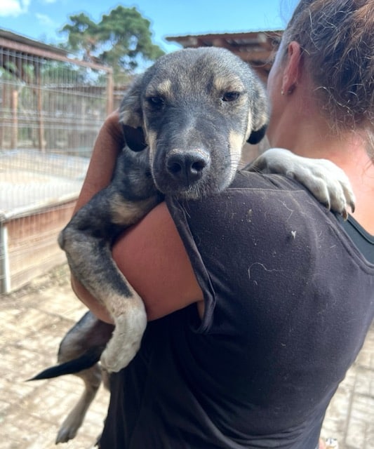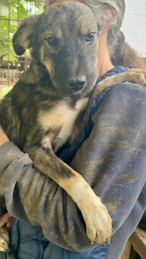 Aufgrund des fehlenden Menschenkontaktes ist INA bereits sehr schüchtern geworden. Wenn man sie auf dem Arm hat, ist für sie alles gut, sie bleibt entspannt sitzen und lässt sich streicheln. Ina braucht jetzt dringend eine Ausreisemöglichkeit, dann wird sie sich noch ganz junghundtypsich entwickeln können.