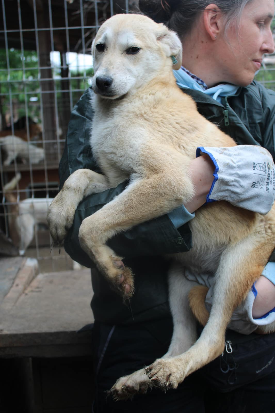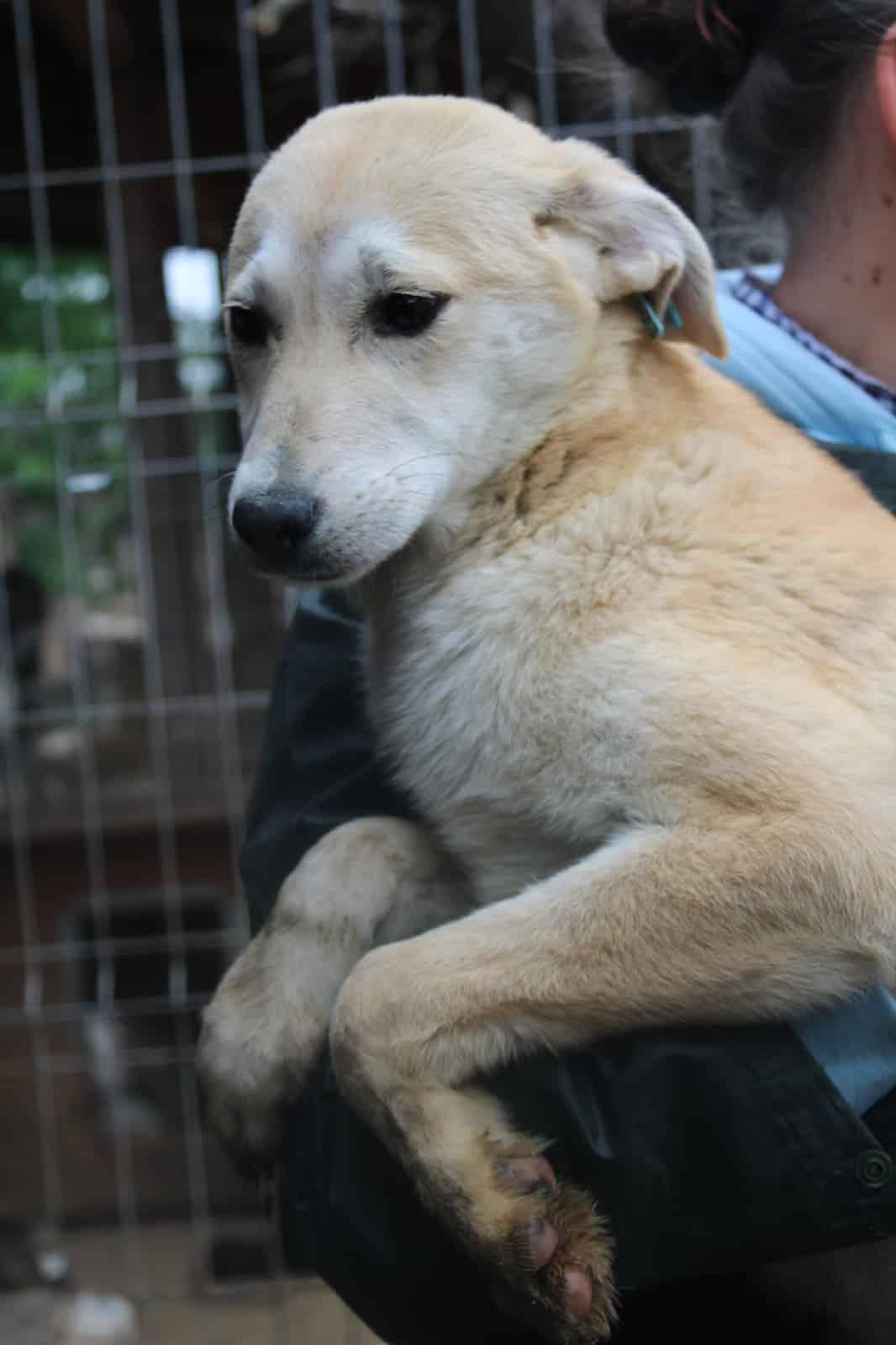 Uns Menschen gegenüber ist sie aufgeschlossen und ließ sich gut auf den Arm nehmen. Sie würde eine sehr nette Familienhündin werden.