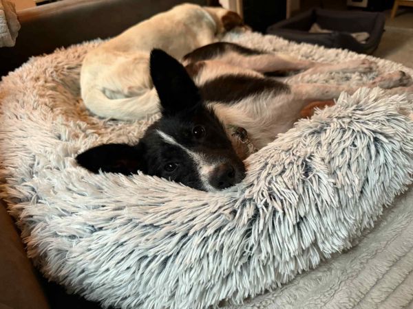 Sie hat sich sehr gut eingelebt und zeigt sich in ganz vielen Dingen ziemlich unkompliziert. Auf ihrer Pfelegestelle lebt sie sehr verträglich mit zwei weiteren Hunden zusammen und eifert den Großen alles nach, dabei immer ein wenig vorwitzig, mit einer großen Portion Zucker.
