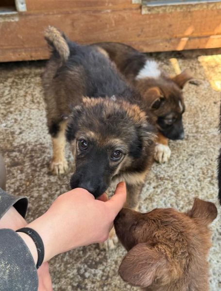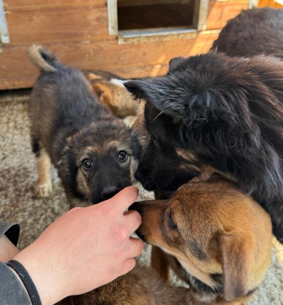 Wesen & Zutraulichkeit (Character & Trustworthiness) | welpentypisch (typical for puppies), verspielt (playful), offen (open), freundlich (friendly), neugierig (curious), überall anfassbar (touchable everywhere) |