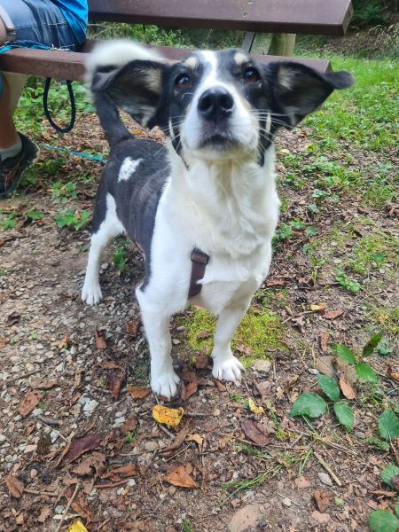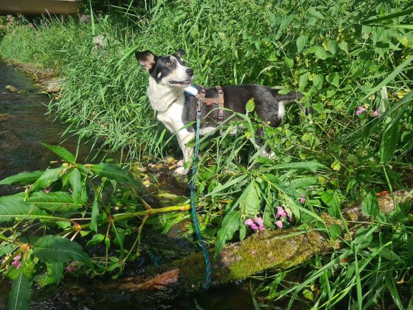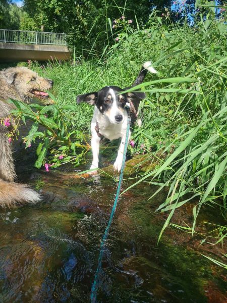 Bei Gassigängen läuft sie gut an der Leine und nimmt ihre Umwelt sehr aufmerksam auf. Im Wald hat sie ihre Öhrchen oben und checkt alles genaustens. Es ist davon auszugehen das sie jagdlich ambitioniert ist, als uns ein Reh begegnete wäre sie ihm am liebsten gefolgt. Sie geht gerne spazieren, muss aber noch etwas an ihrer Kondition trainieren nach den Monaten im winzigen Zwinger in Rumänien.