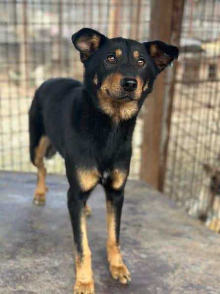 Im Vergleich zu ihren Kennelgenossen hielt sich die niedliche ISABEAU bei unserem Besuch eher in der zweiten Reihe auf. Sie beobachtete das Geschehen aufmerksam und mit großem Interesse. Zwischendurch packte sie dann doch die Neugier – und sie kam eigenständig auf uns zu. Nach einem kurzen Moment zog sie sich jedoch wieder zurück. Streicheln lassen wollte sie sich nicht, dabei wich sie unseren Annäherungen aus. Man merkt ISABEAU leider an, dass sie menschliche Nähe einfach nicht kennenlernen durfte, aber sie bringt eine feine, vorsichtige Offenheit mit, die viel Potenzial für Vertrauen erkennen lässt. Für diese süße Maus suchen wir einen liebevollen Platz bei erfahrenen Menschen, die sie behutsam ankommen und auftauen lassen. Ein souveräner Ersthund würde ihr die Umstellung sicher erleichtern. In ihrem gemischten Rudel zeigt ISABEAU sich durchgehend verträglich.