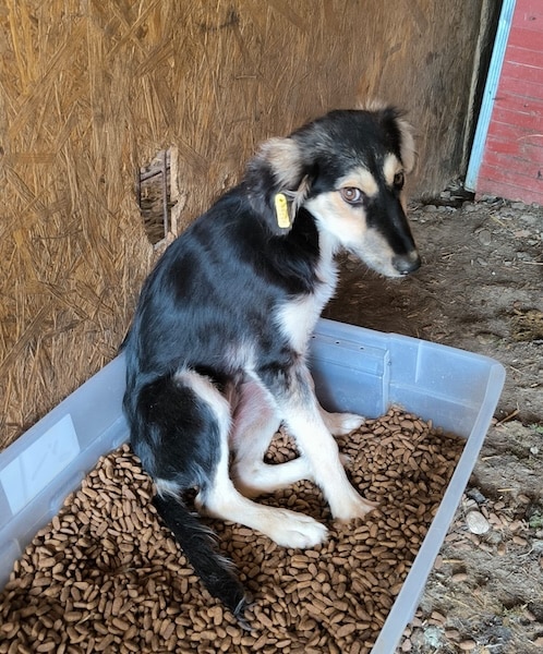 ISABELLA lebt zusammen mit Rüden und Hündinnen in einem Kennel. Dort scheint sie verträglich zu sein.