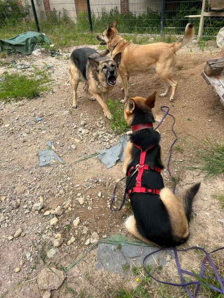 Sie fährt problemlos im Auto mit, nur das Einsteigen ist noch nicht so ihrs. Spaziergänge liebt sie sehr und geht hier schon relativ gut an der Leine. Hier hat sie einen Garten in dem sie sich sehr gerne aufhält. Neuen Situationen gegenüber ist sie erstmal unsicher, aber wenn man ihr die Zeit und den Raum gibt ist sie schnell neugierig. Fremde Menschen sind auch erstmal etwas unheimlich aber da sie leckerchen liebt, legt sich das sehr schnell. Männern gegenüber ist sie im allgemeinen gegenüber noch etwas unsicherer. Da orientiert sie sich aber sehr am Ersthund und geht hin, sobald der Ersthund voran geht. Das alleine bleiben klappt schon in Hundegesellschaft gut. Ganz alleine müsste wieder von vorne geübt werden. Stubenrein war sie vom ersten Tag an.