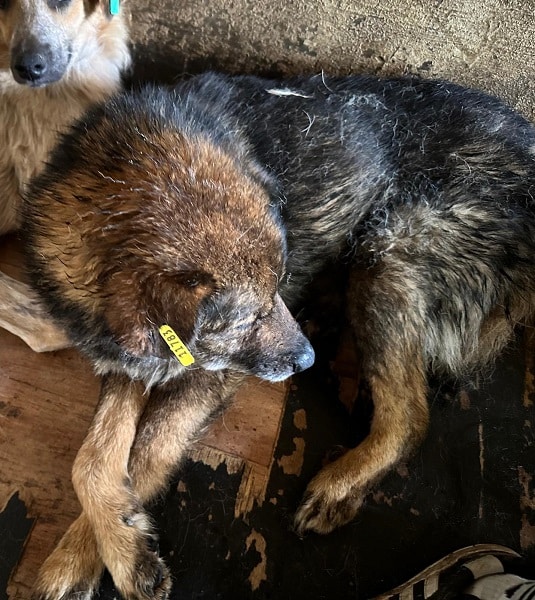 Den kleinen Buben ISSKO haben wir schlafend im Futtertrog in dem Vetkennel angetroffen. Er wurde kurz vorher kastriert und war noch erschöpft. Wir kamen dann später noch einmal nach ihm schauen. Leider war er noch immer etwas schreckhaft und war nicht an unseren Leckerlies und Streicheleinheiten interessiert. ISSKO hat zudem ein Problem mit seinem Hinterbein, kann nicht richtig auftreten, genaueres konnten wir nicht sehen. Der Opi sollte zu verständnisvollen und entspannten Menschen ziehen, die ihn in Ruhe ankommen lassen. Er hat so sehr ein weiches Körbchen verdient.