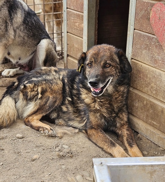ISKKO freute sich sehr über unseren Besuch und begrüßte uns freundlich. Er genoss unsere Streicheleinheiten und präsentierte uns sein Bäuchlein. Mit den anderen Hunden seines Kennels, dass erst neu zusammengesetzt wurde, zeigt er sich verträglich.