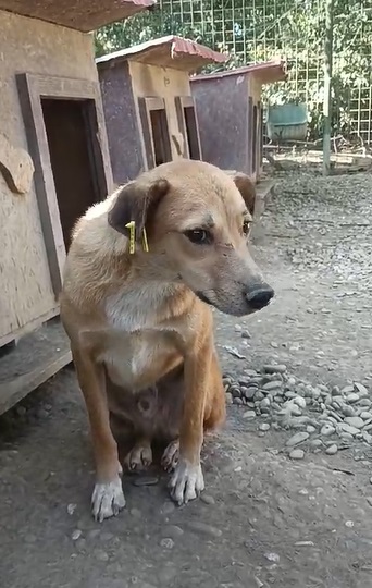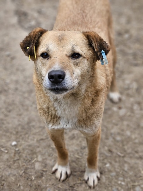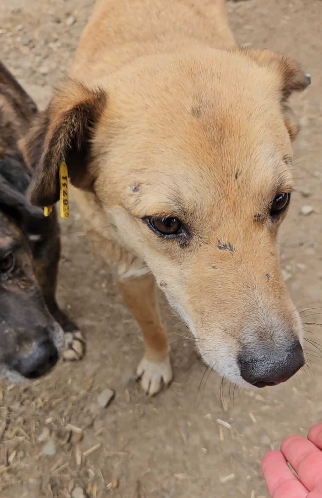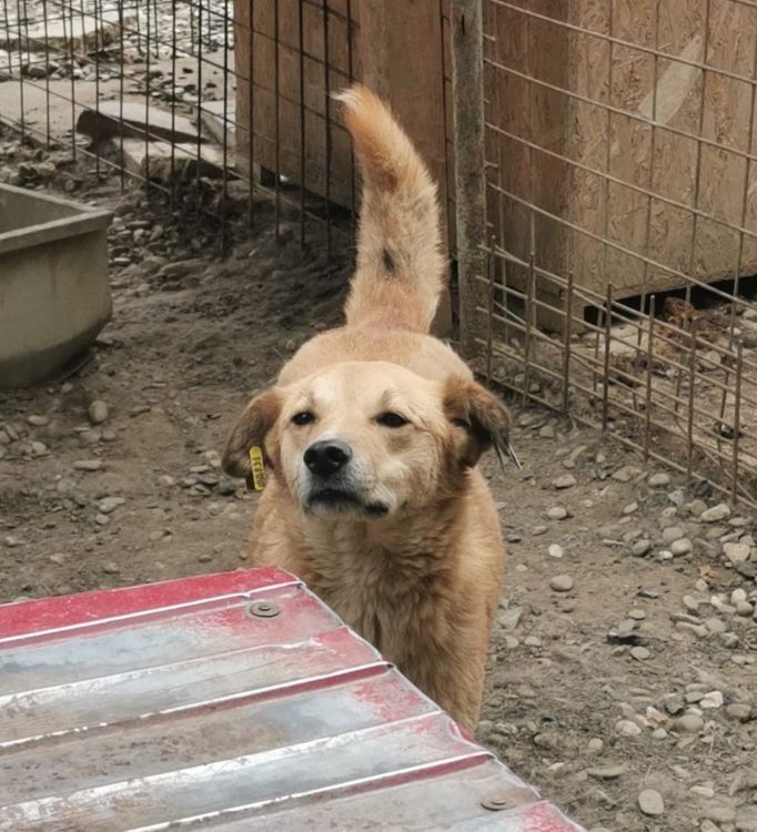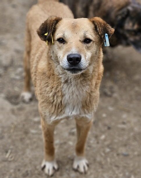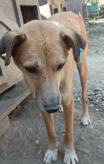 ISLAY wartete geduldig in der zweiten Reihe, während wir uns mit den aktiveren Hunden des Kennel beschäftigen. Als wir uns ihm zuwandten, nahm er gerne unsere Leckerchen aus der Hand. Für mehr fehlte ihm der Mut und er wich zurück. In einer anderen Umgebung mit verständnisvollen Menschen sollte dieser letzte Schritt des fehlenden Vertrauens bald überwunden sein.