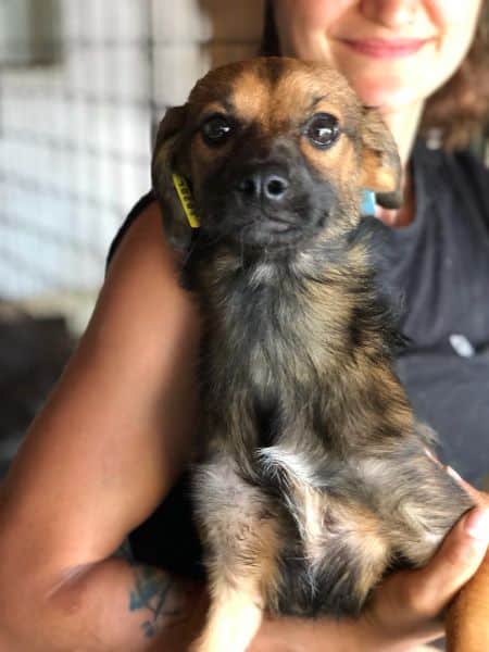 Wie kann man Zucker auf Hündisch beschreiben? Muss man nicht, sondern einfach diese super, süße Hundedame auf den Arm nehmen. Alles um einen herum, ganz egal wie schrecklich der Ort gerade ist, wird süß. Sie sitzt wahrscheinlich mit ihrer Mama in den engen VetKennels. Es ist kein anderer Platz aktuell frei. Sie kann sofort – bitte zusammen mit ihrer Mama – die genauso Zucker ist – ausreisen. In den großen Kennels haben die zwei keine Chance.