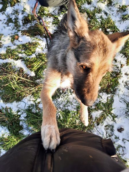 Itoya, kam kurz vor Weihnachten 2023 im Odenwald an. Noch viel zu dünn und voller Furcht was auf sie zukommen könnte. Lange legte sie sich bei Situationen die sie ängstigen flach auf den Boden…das passiert immer noch ab und an, aber die Neugier und auch die Unterstützung der Hundekumpels helfen ihr diese Unsicherheiten immer weiter zu überwinden. Itoya ist ganz fleißig dabei, sich die schönen Seiten der Welt zu erobern.