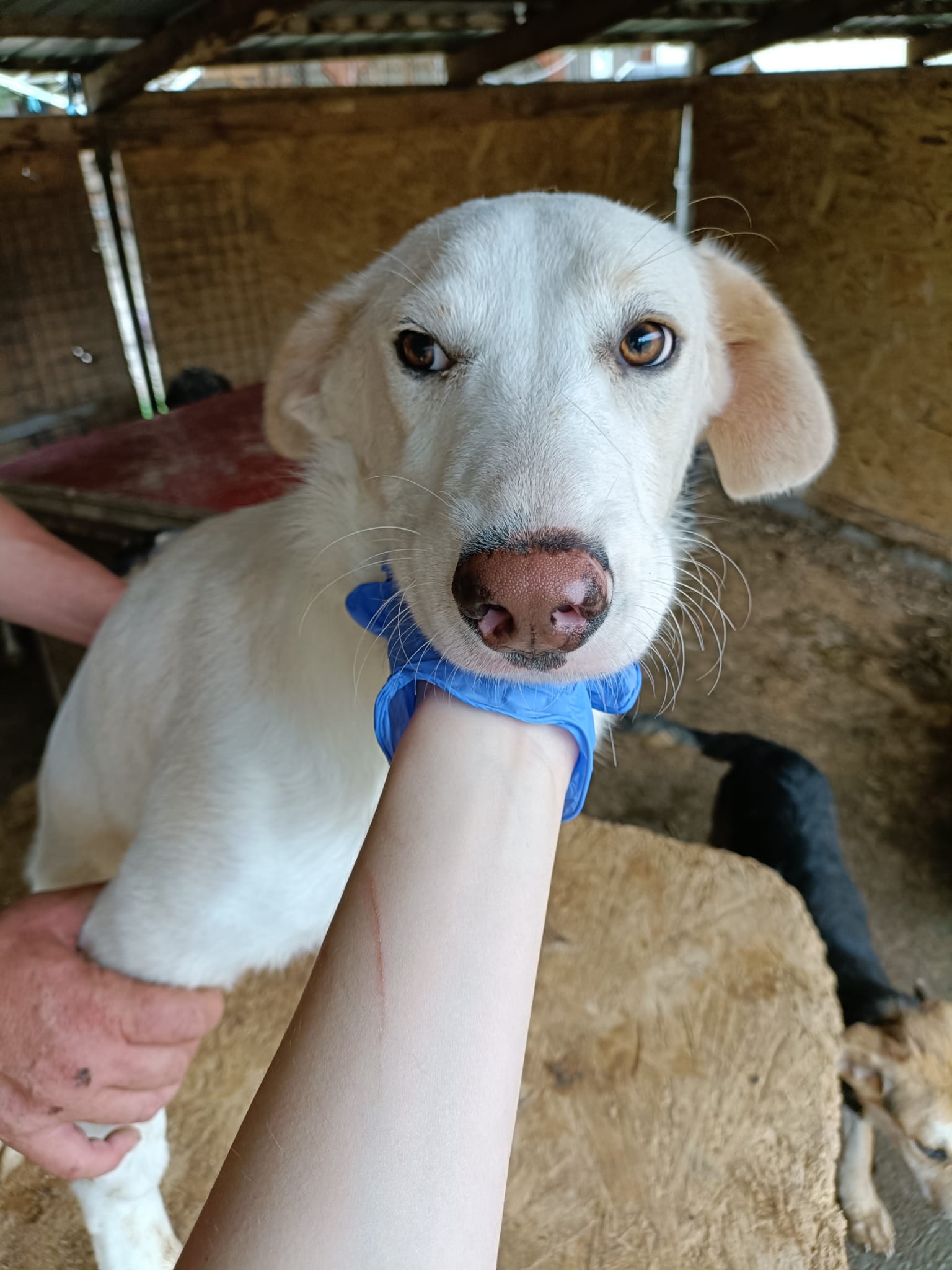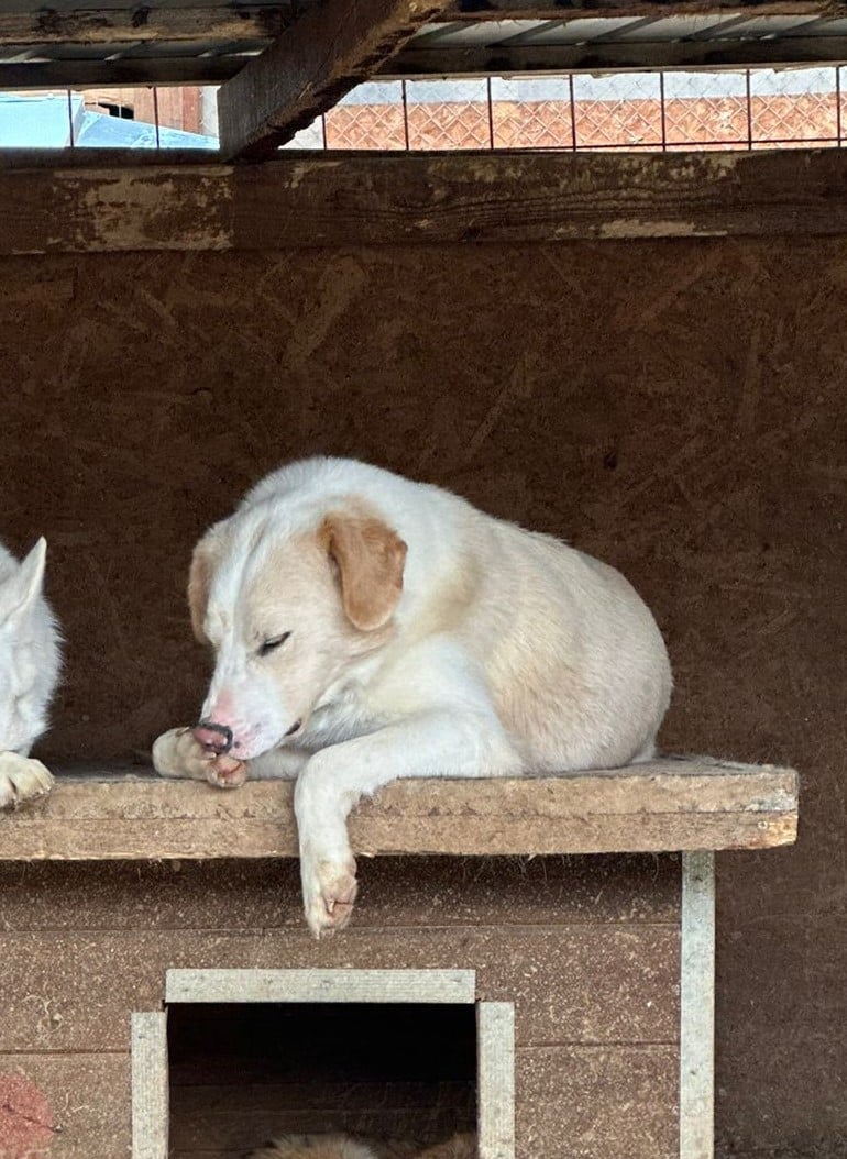 Update 04/23: Ivo ist ein wunderschöner Rüde, der im Shelter groß wird. Leider hat sich seine Unsicherheit weiter verstärkt, er ist aktuell leider nicht anfassbar. Er beobachtet lieber auf seiner Hüte das Geschehen, dass ist alles was er hat. Mit den anderen Hunden ist er sehr verträglich.