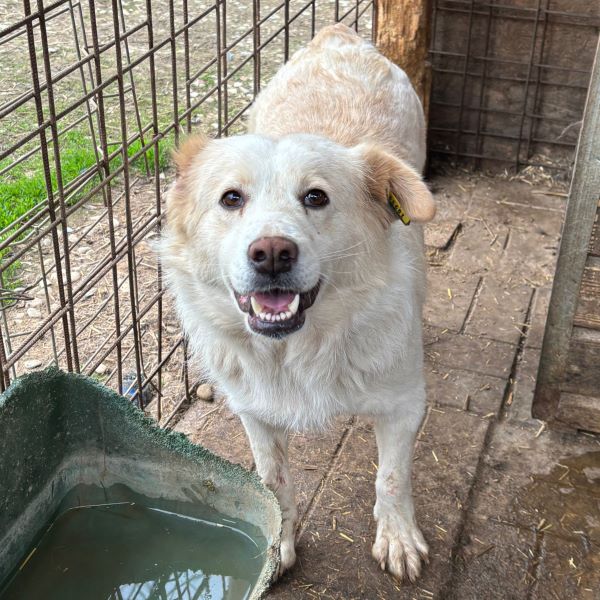 Wunderschöne Hündin mittlerer Größe, die leider ihr rechtes Ohr einbüßen musste. Durch ihr wuscheliges Fell fällt es aber nicht auf. Uns gegenüber war sie aufgeschlossen und zeigte sich gegenüber den anderen Hunden sehr verträglich. Sie hatte auch mal Welpen gehabt.