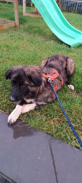 Von ihren Geschwistern ist sie die „Ruhigste“, aber dennoch Welpen typisch aktiv und verspielt. Die Hündin mit dem Bärchengesicht kann als Einzelhund vermittelt werden oder auch gerne zu einem bereits vorhandenen Hund. Toll wäre natürlich auch, wenn sie mit ihrem Bruder oder ihrer Schwester ausziehen könnte.