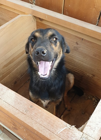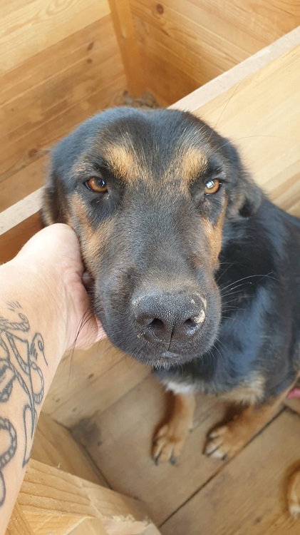 JACCY taute nach anfänglicher Schüchternheit total auf. Es war ganz berührend, wie er da in seiner Hütte saß und sich den Bauch streicheln ließ. Man merkte ihm an, wie sehr ihm ein liebender Mensch fehlt und wie glücklich er über die Aufmerksamkeit war.
