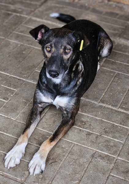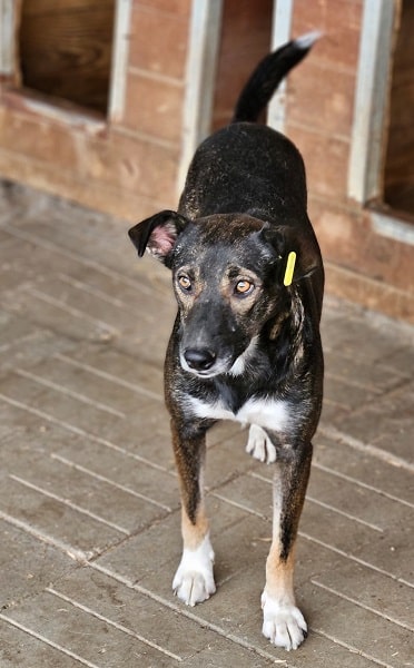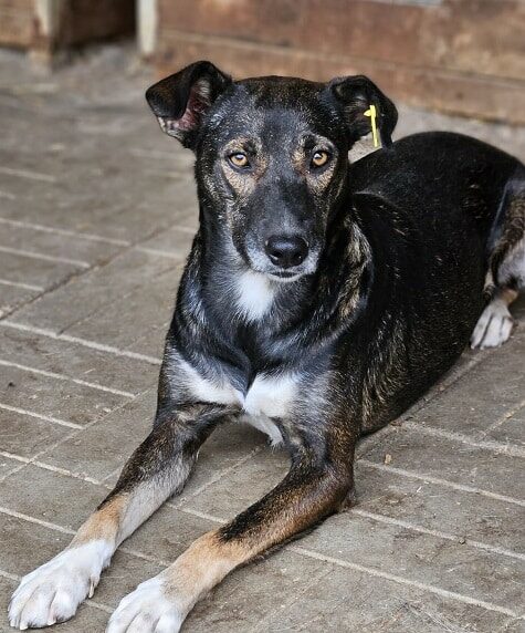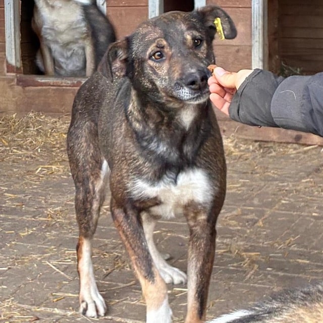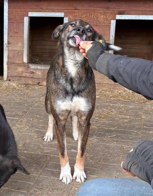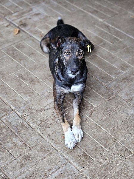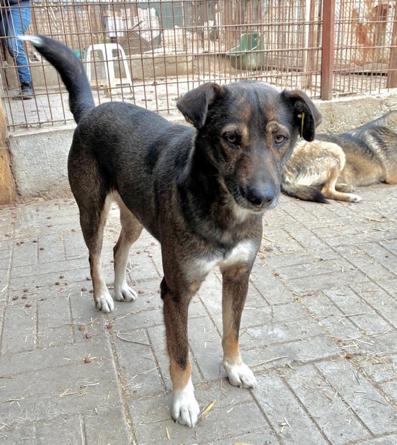 JACINTA ist eine freundliche, noch unsichere Hündin. Sie ist neugierig und wollte sich gerne unsere Leckerlies aus der Hand abholen, hat sich dann aber doch nicht getraut. Wenn wir sie ihr hingeworfen haben, hat JACINTA sie gerne gefressen. Leider weicht sie bei Annäherungsversuchen aus und ist noch nicht anfassbar.