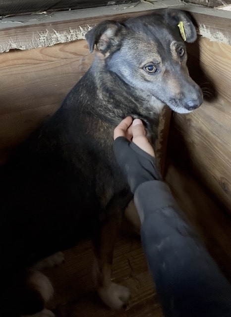 Unser zartes Rehlein JACINTA hofft nun seit mehr als einem Jahr im Shelter auf ihr Glück. In dieser Zeit hat sie eine tolle Entwicklung hingelegt: interessiert kam sie mit den anderen Hunden immer wieder ganz nah zu uns heran, um zu schnuppern und sich Leckerlie aus unseren Händen zu holen. Ihre Neugier uns gegenüber war deutlich spürbar und JACINTA hielt sich die ganze Zeit in unserer Nähe auf. In der sicheren Hütte konnten wir die zarte Maus schließlich behutsam streicheln. Sie kennt die intensive Nähe zu uns einfach nicht, weshalb ihr die Berührungen noch sichtlich Unbehagen bereiteten. Dennoch ließ sie es ganz brav geschehen und nahm weiterhin Leckerlie aus unseren Händen – ein sehr gutes Zeichen und die perfekte Basis, um daran in einer stressfreien Umgebung anknüpfen zu können. Nun fehlen unserer JACINTA nur noch erfahrene und einfühlsame Menschen, die sie an die Pfote nehmen und an ein Zusammenleben auf der Sonnenseite heranführen. Ein netter Ersthund würde ihr die Eingewöhnung sicher erleichtern, da das Rudel ihr Sicherheit gab.