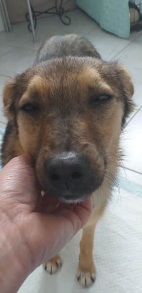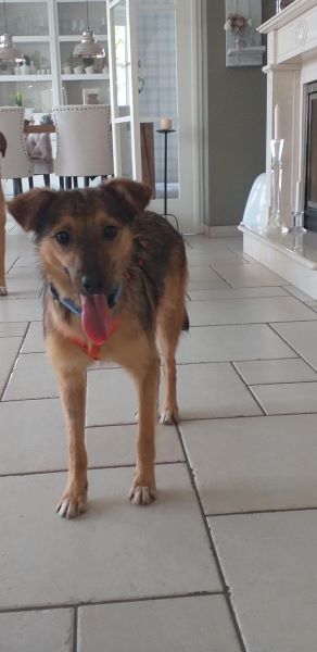 Die Untersuchung beim Tierarzt verlief vorbildlich. Der Mittelmeercheck erbrachte eine leichte Erhöhung des Ehrlichiosewertes, weshalb Jackpot z. Zt. noch ein Antibiotikum bekommt. In ungewohnter Umgebung oder durch Umweltreize/ – geräusche ist er noch unsicher. Aber das muss natürlich weiterhin geübt werden. Jackpot ist sehr lernwillig und vertraut seinen Menschen.