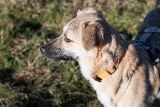 Auf den Spaziergängen orientiere ich mich ausschließlich an meinen menschlichen Begleitern und bleibe immer in ihrer Nähe und halte Blickkontakt zu ihnen. Erschrecke ich mich oder habe vor etwas Angst, stelle ich mich ganz nah an meinen Menschen und lasse ihn das regeln. Bisher hatte ich keinerlei Ambition auf die Jagd zu gehen und die hier lebenden Hühner guckte ich nur einmal neugierig an und seither interessieren sie mich gar nicht mehr. Prinzipiell bin ich mit allem und jedem verträglich und ich lebe hier in Harmonie mit jung und alt, klein und groß, Rüden und Hündinnen. Ich bin ein sehr ausgeglichener und ruhiger Hundetyp, der bisher noch nichts angestellt oder kaputt gemacht hat. Ich bleibe auch sehr gut alleine zu Hause und schlafe derweil eine Runde. Autofahren? Ist für mich auch kein großes Ding.