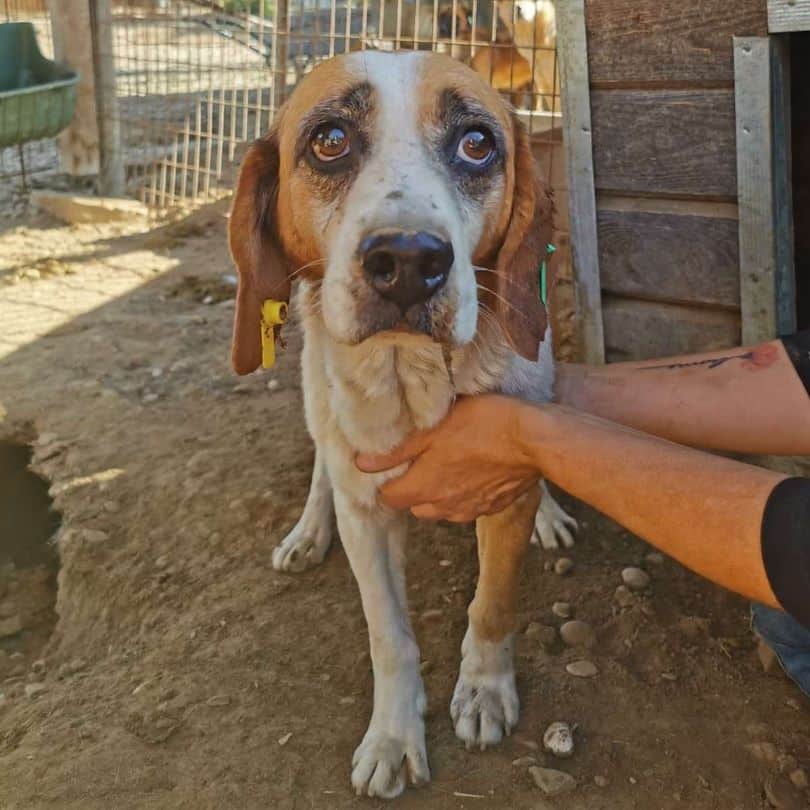 Dieser berührende kleine Rüde ist mit der Sheltersituation offensichtlich vollkommen überfordert. Als Kleinster im Kennel hat er ganz schön zu kämpfen. Dementsprechend müde und erschöpft ist er. Trotz dieser Umstände verhielt er sich uns gegenüber neugierig und freundlich. Er suchte aktiv den Kontakt zu uns und nahm unsere mitgebrachten Leckerchen aus der Hand und ließ sich gerne und überall anfassen. Wir wünschen uns für den kleinen Kerl, dass er Bucov ganz schnell verlassen kann.