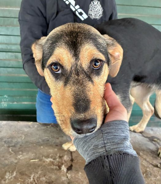 JAGGER wurde im März 2025 völlig verängstigt mit seinen 8 Geschwistern im Shelter abgegeben. Sie lebten vorher in einem Garten, seit sie ganz kleine Welpen waren.