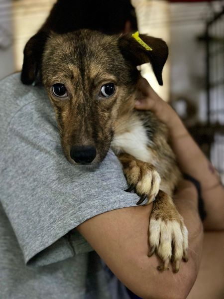 Im hintersten Innen-VetKennel sitzt diese schmal gebaute Hündin. In diesen Bereich kommt kein Tageslicht. Immer im Dämmerlicht zu sitzen, ist heftig, aber aktuell der sicherste Ort für sie im Shelter. Also kein Wunder, das sie Angst hatte und nicht wusste, was nun passiert als wir zu ihr gingen. Trotz dieser Angst ließ sie sich problemlos händeln. An einem schöneren Ort würde diese Hündin schnell ihre Angst verlieren und sich dem Menschen öffnen können. Sie ist überall anfassbar und verträglich. Bitte lasst sie nicht im Dunkeln sitzen.