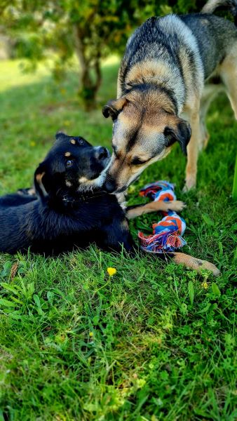 Jalas Traum vom „Hochleistungssportler“ ist leider geplatzt, beim Röntgen wurde festgestellt, dass beide Hüften defekt sind….trotzdem ist die Kleine ein toller Hund…. Jala ist eine freundliche, menschenbezogene, sehr schlaue kleine Junghündin mit einem lackschwarzen Fell. Sie ist sehr neugierig und meistens frech vorne mit dabei.