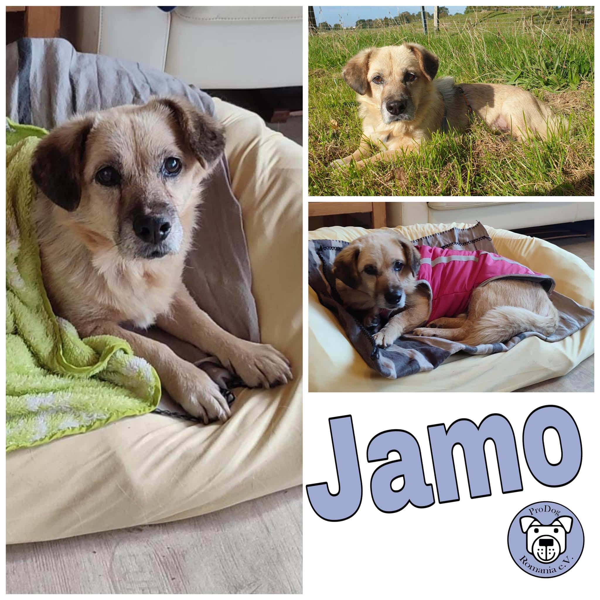 Jamo wünscht sich ein ruhiges Zuhause mit Garten und auf keinen Fall Treppen die er mühevoll erklimmen muss. Eine gemütliche Umgebung, ein warmes Plätzchen und eine Familie die ihn mit Kuscheleinheiten und Liebe überhäuft sind genau das Richtige für unseren kleinen Chameur.