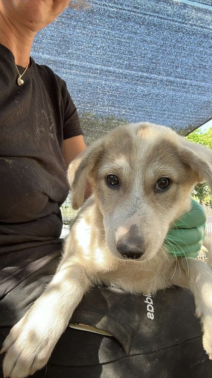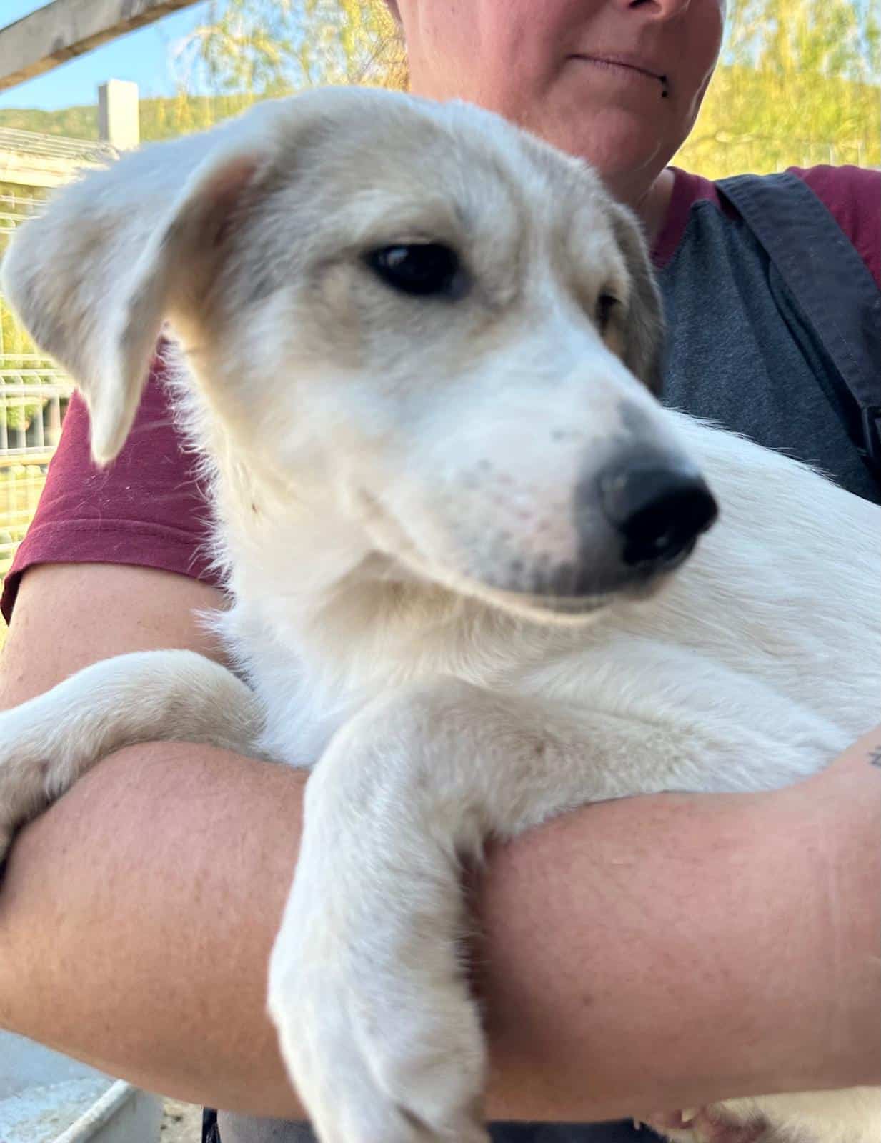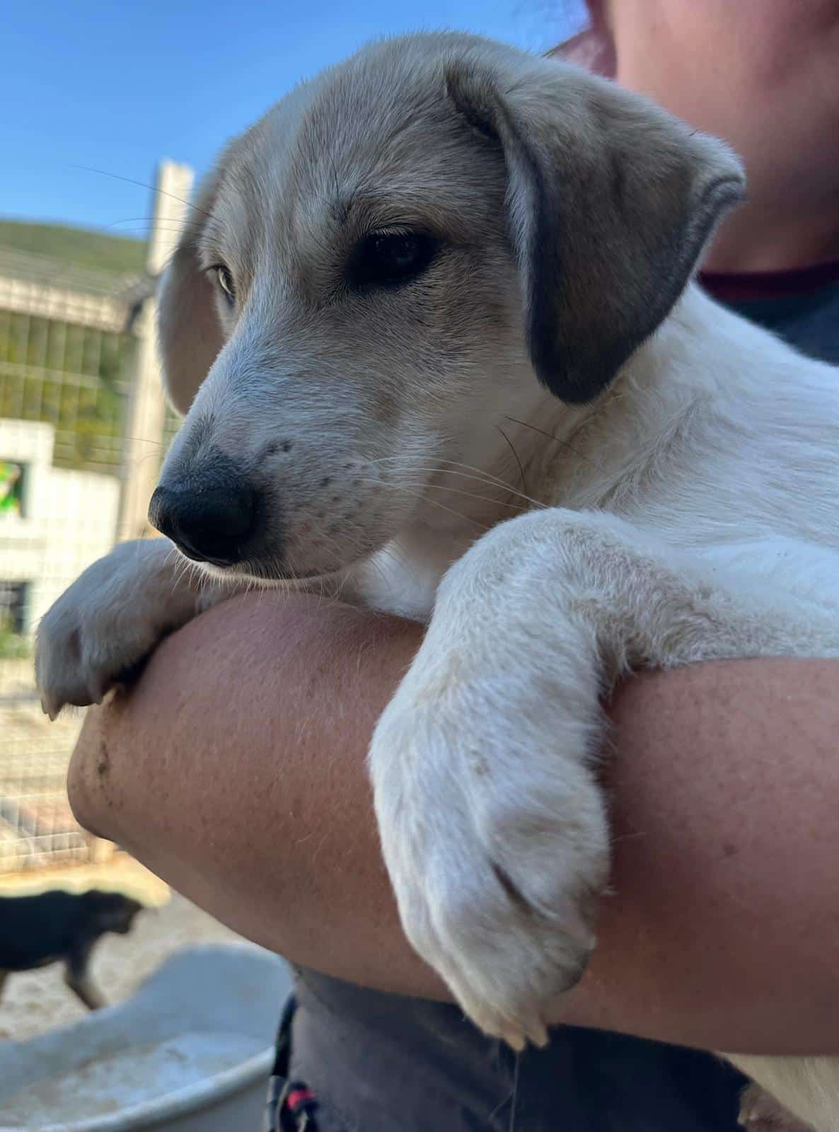 Bei unserem Besuch im April wollte JANE am liebsten unsichtbar sein, sie versteckte sich in der Hütte, ganz hinten, abgeschirmt von den anderen Hunden. Doch diesmal zeigte sie uns eine andere Seite: Sie war interessiert, beobachtete uns aufmerksam und vielleicht hätte sie sich sogar getraut, näherzukommen. Doch leider wird sie im aktuellen Kennel von einem dominanten Rüden eingeschränkt, was ihr wenig Raum zur Entfaltung lässt. In einer sicheren, liebevollen Umgebung hat JANE Potenzial sich weiter zu öffnen, mutiger zu werden und Vertrauen langsam zu fassen.