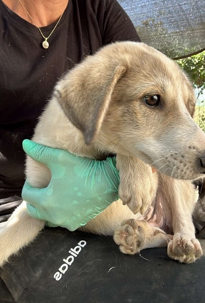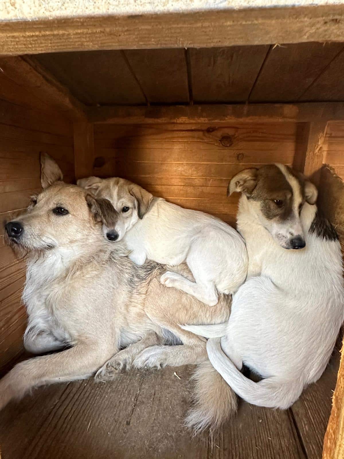 JANE hat sich im stressigen Shelteralltag sehr zurückgezogen. Während unseres Besuchs saß sie die ganze Zeit in ihrer Hütte, zeigte sich scheu und panisch. Jede Bewegung verunsichert sie – sie flüchtet lieber, als sich auf Nähe einzulassen. Sie versteckt sich hinter anderen Hunden und sucht deren Schutz.