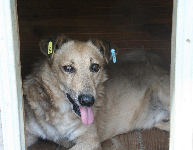 JANNICK ist weiterhin schüchtern, lässt sich aber in seiner Hütte gut streicheln. Man merkt, dass er das noch nicht genießen kann.