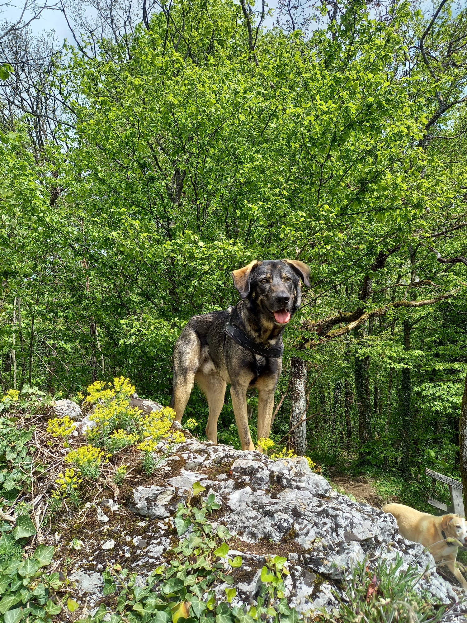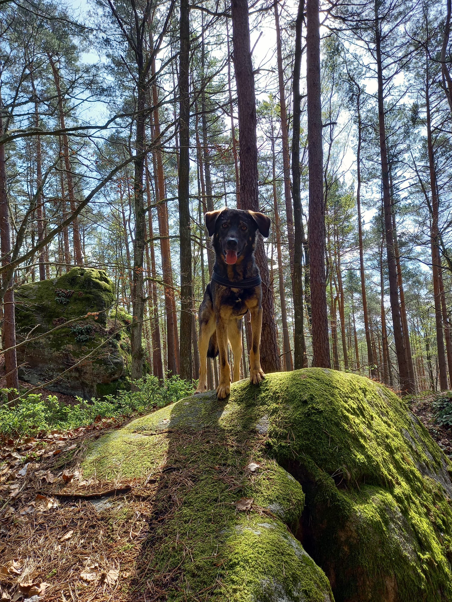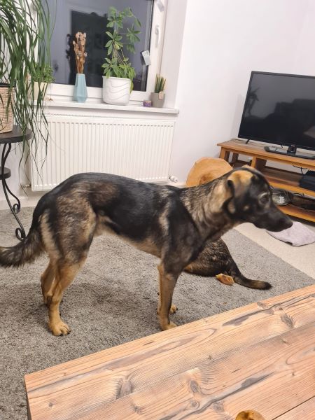 Da Janosch sich gerne an anderen Hunden orientiert, wäre es wichtig, dass er zu einem sozial gefestigten Hund dazu vermittelt wird.
