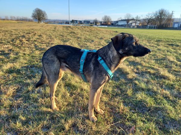 Janosch ist mega verspielt und läuft für sein Leben gerne Gassi. Mehr noch: sein Pflegefrauchen erzählt, dass er supertoll an der Leine geht und er auch am Rad brav mitläuft. Von anderen Radfahrern hält er Abstand und weicht lieber aus.