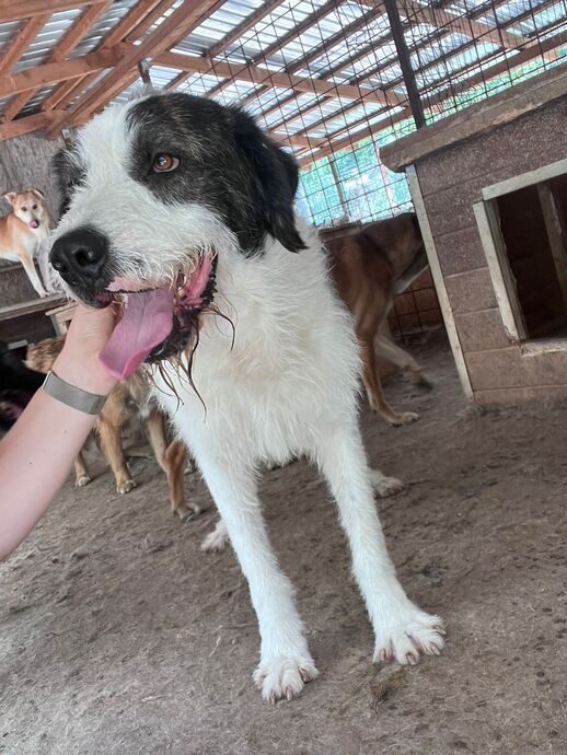 Update 07/23: Janosh ein ganz toller freundlicher Rüde, mit ruhigem Wesen. Janosh ist gut anfassbar und aufgeschlossen. Im Shelter wirkt er verloren und mit der Situation überfordert. Mit den anderen Hunden ist er sehr verträglich.